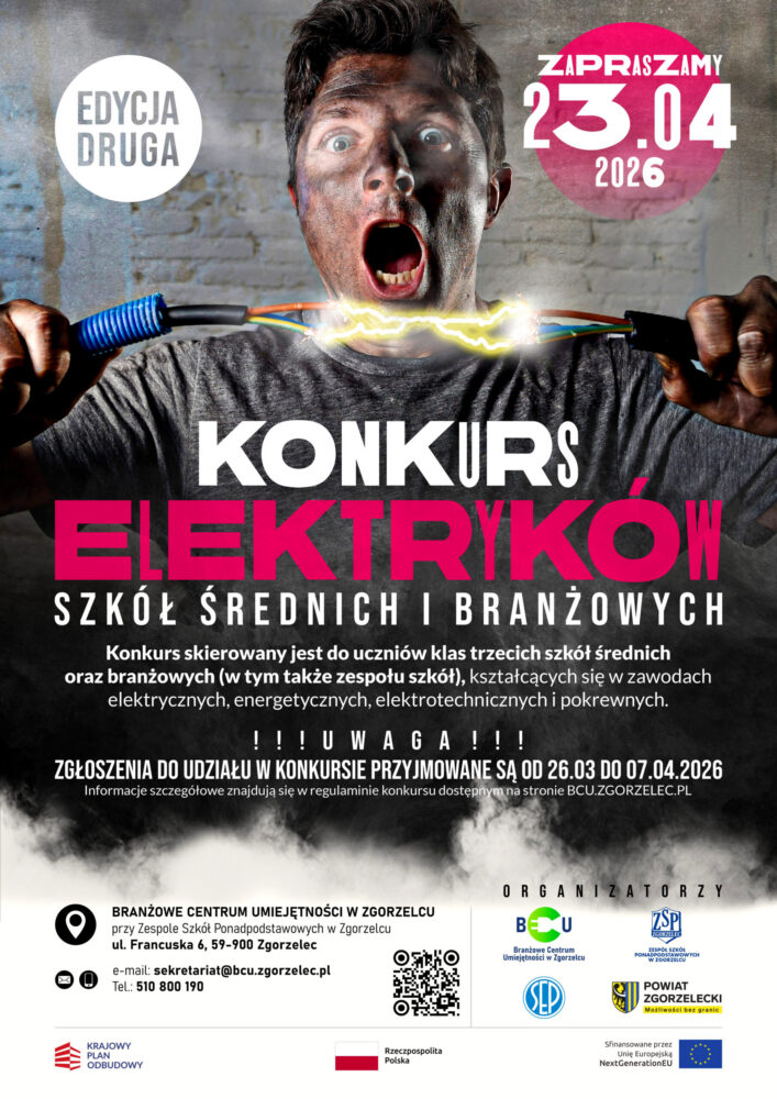Branżowe Centrum Umiejętności w Zgorzelcu i Zespół Szkół Ponadpodstawowych zapraszają na „Konkurs Elektryków Szkół Średnich i Branżowych – edycja II”